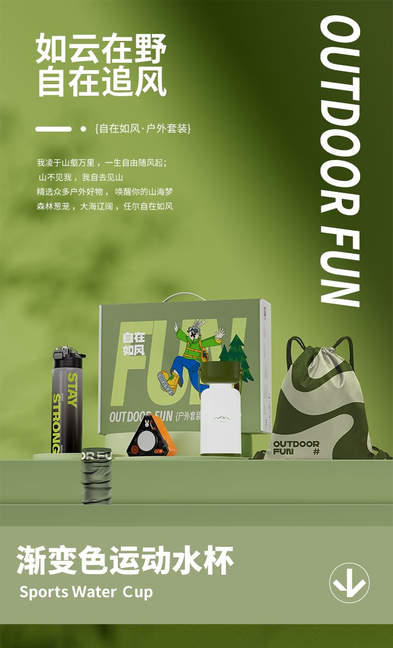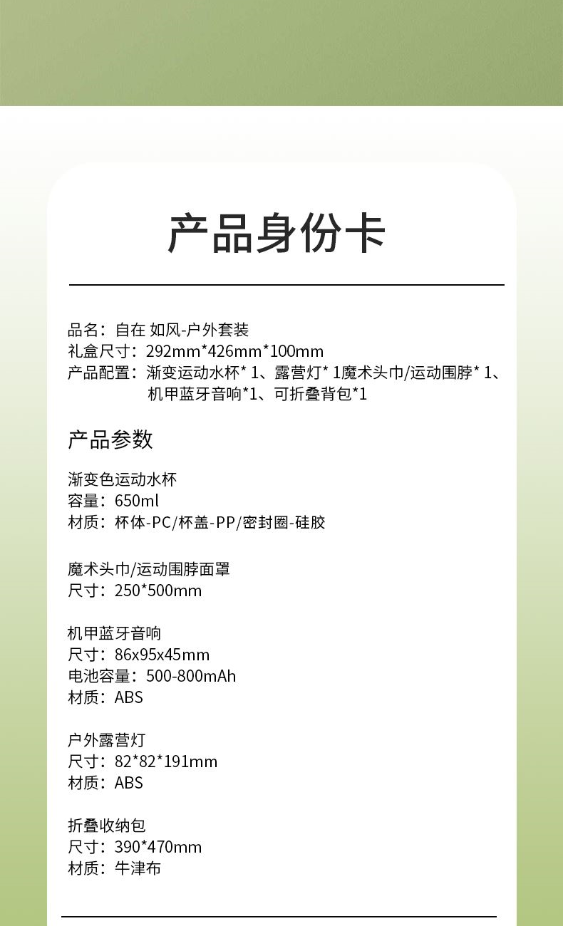 禮盒配置:漸變運(yùn)動(dòng)水杯* 1、露營(yíng)燈* 1